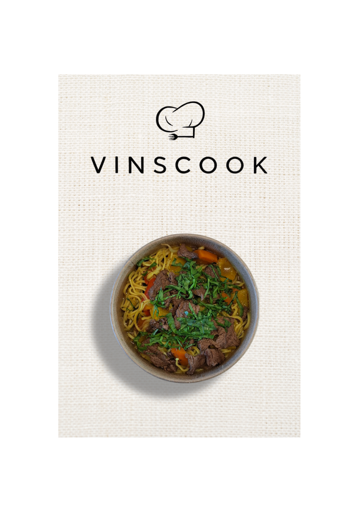 Bœuf (provenance variable, précisée sur le produit), oignon rouges, nouilles de blé, carotte, courgette, curry, paprika, curcuma, gingembre, citronelle, bouillon de viande (cèleri), pousse de soja, oeuf, poivron, soja, sel, poivre